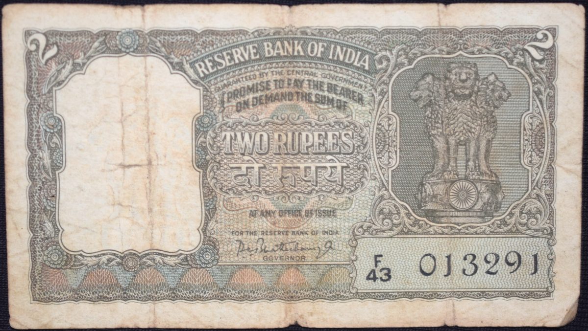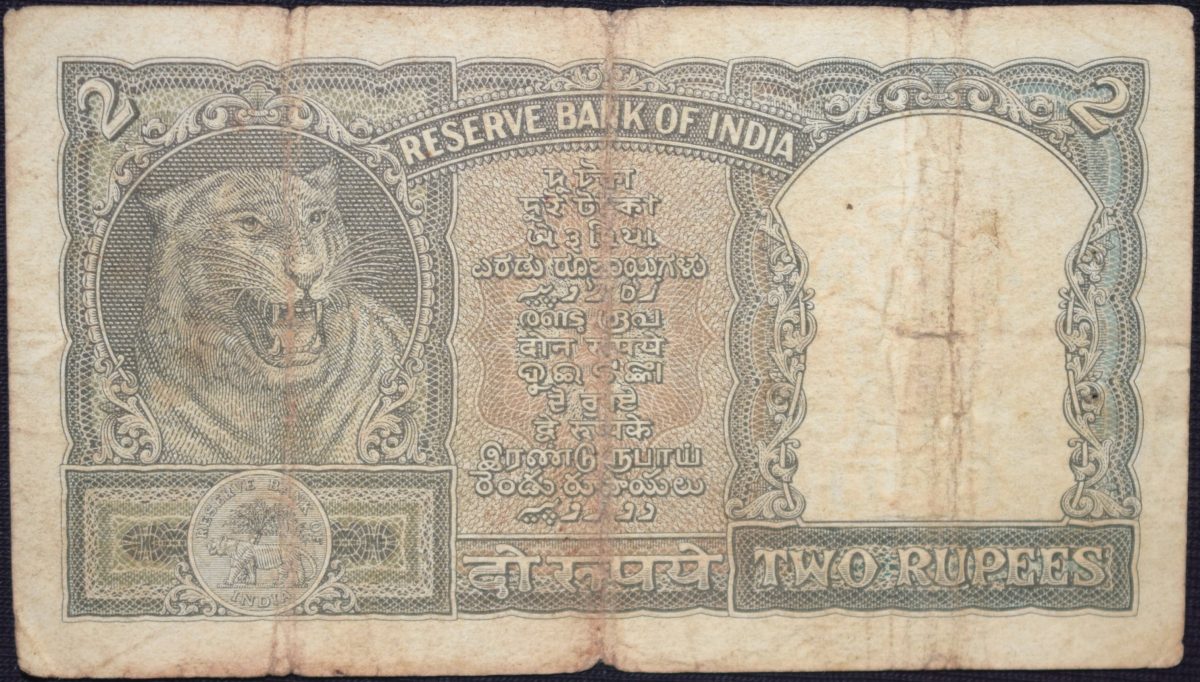 2 Rupees of Republic India (AD 1965) with Tiger head facing right PC Bhattacharya