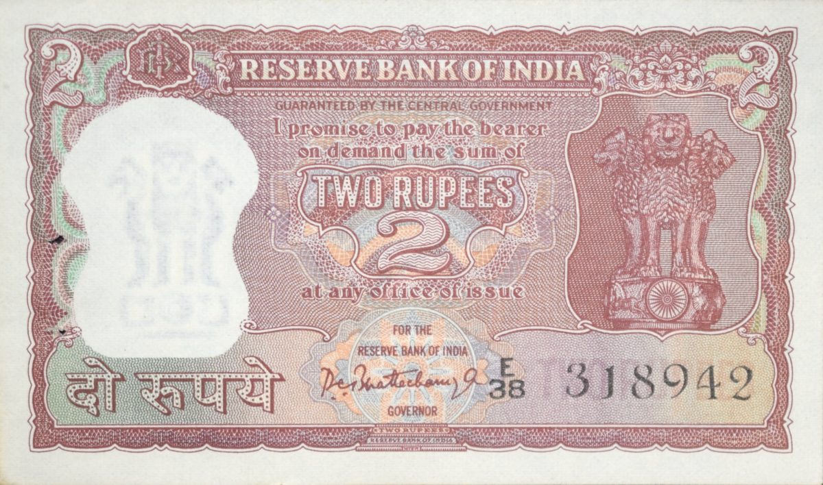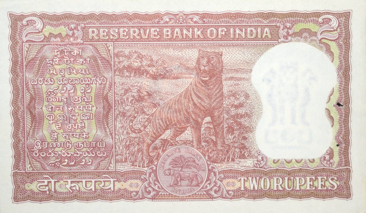 2 Rupees of Republic India (AD 1967) with Bengal Tiger Diomand Series PC Bhattacharya