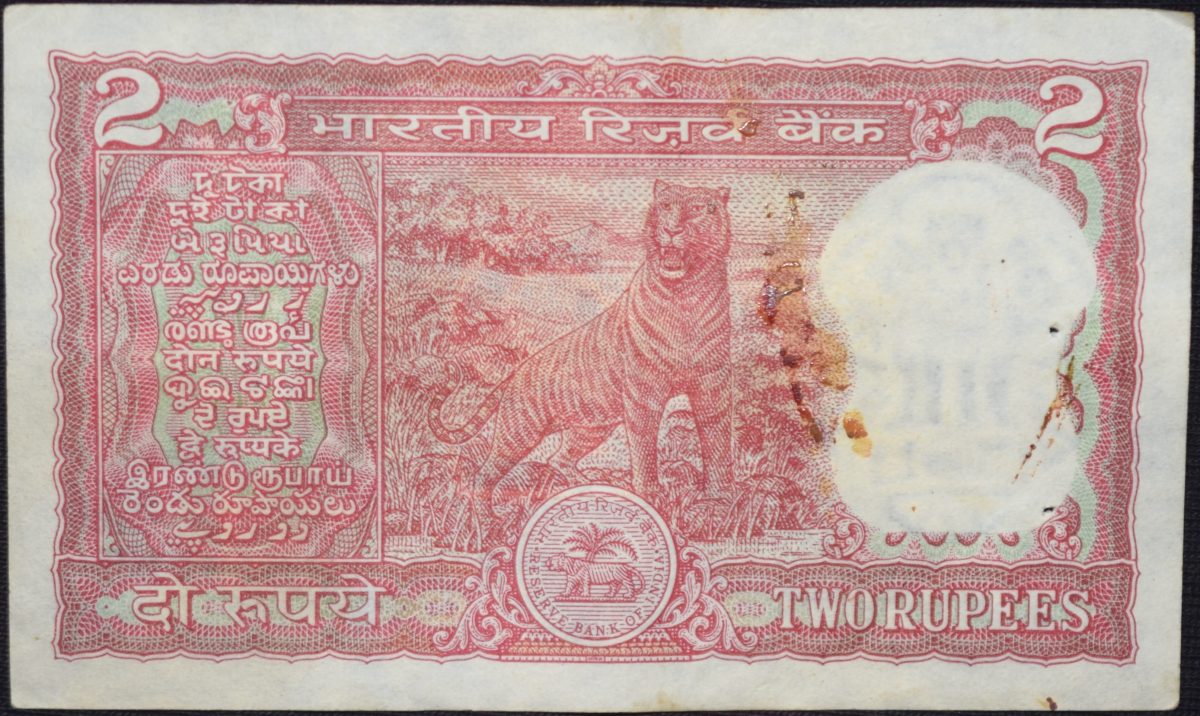 2 Rupees of Republic India (AD 1984-1985) Manmohan Singh Signature with Full Tiger figure with 13 regional languages on the back