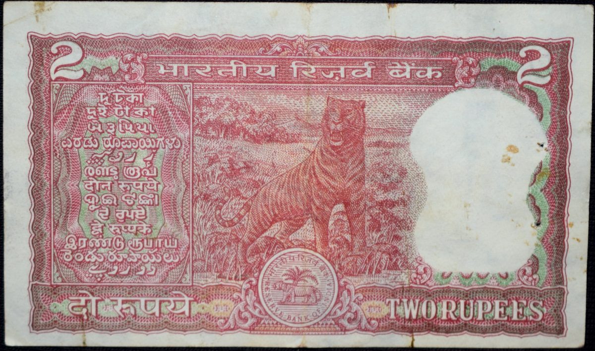 2 Rupees of Republic India (AD 1990-1992) S. Venkatiraman Signature with Full Tiger figure with 13 regional languages on the back