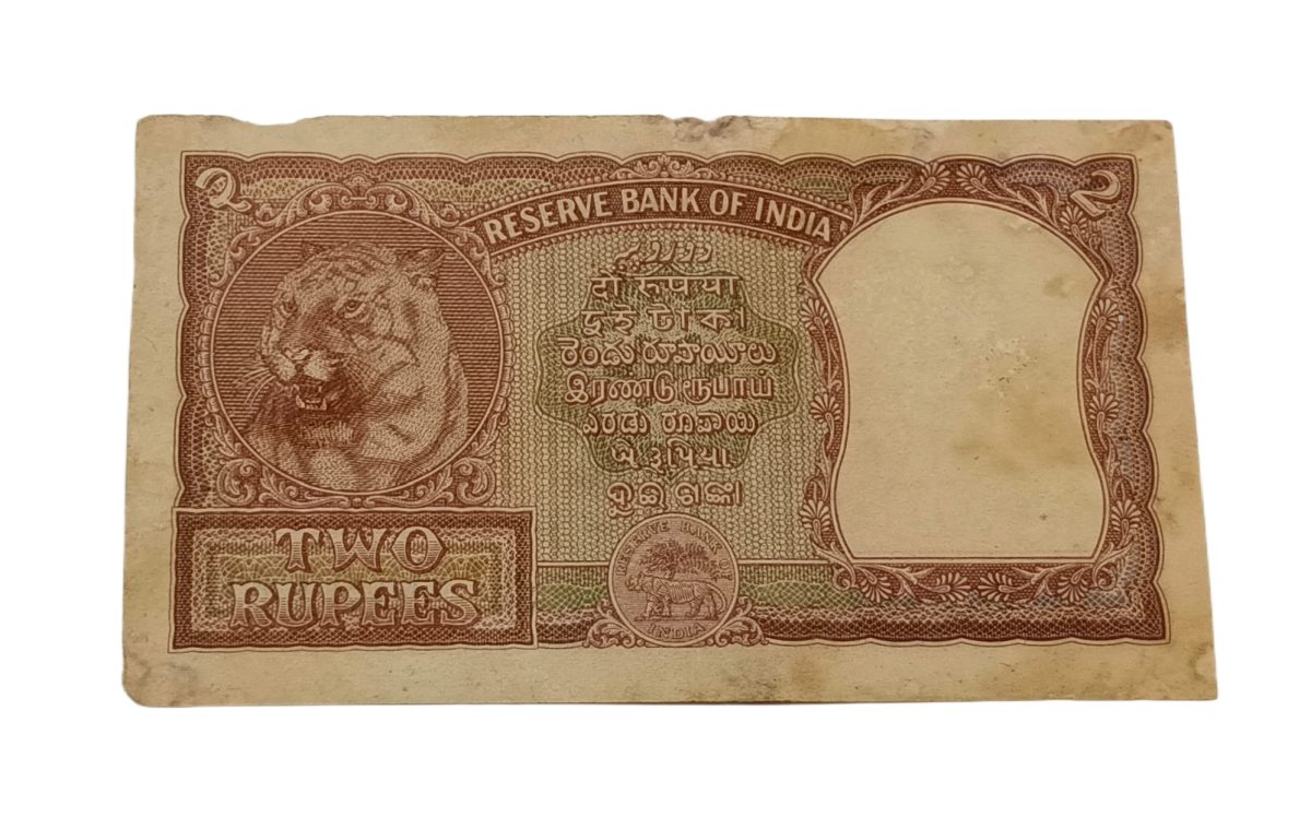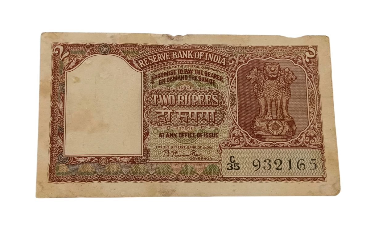 2 Rupees Old Big FAFRA Issue B.RAMA RAO Gujrati FIRST ISSUE **V. RARE** Collectable Grade.