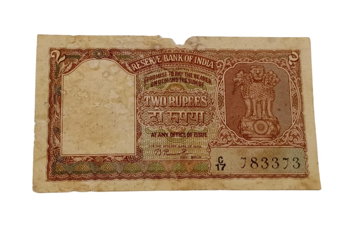 2 Rupees Old Big FAFRA Issue B.RAMA RAO Gujrati FIRST ISSUE **V. RARE** Collectable Grade with Minor Torns.