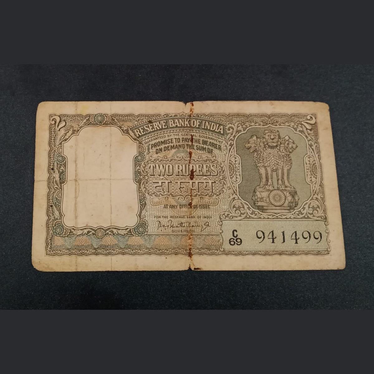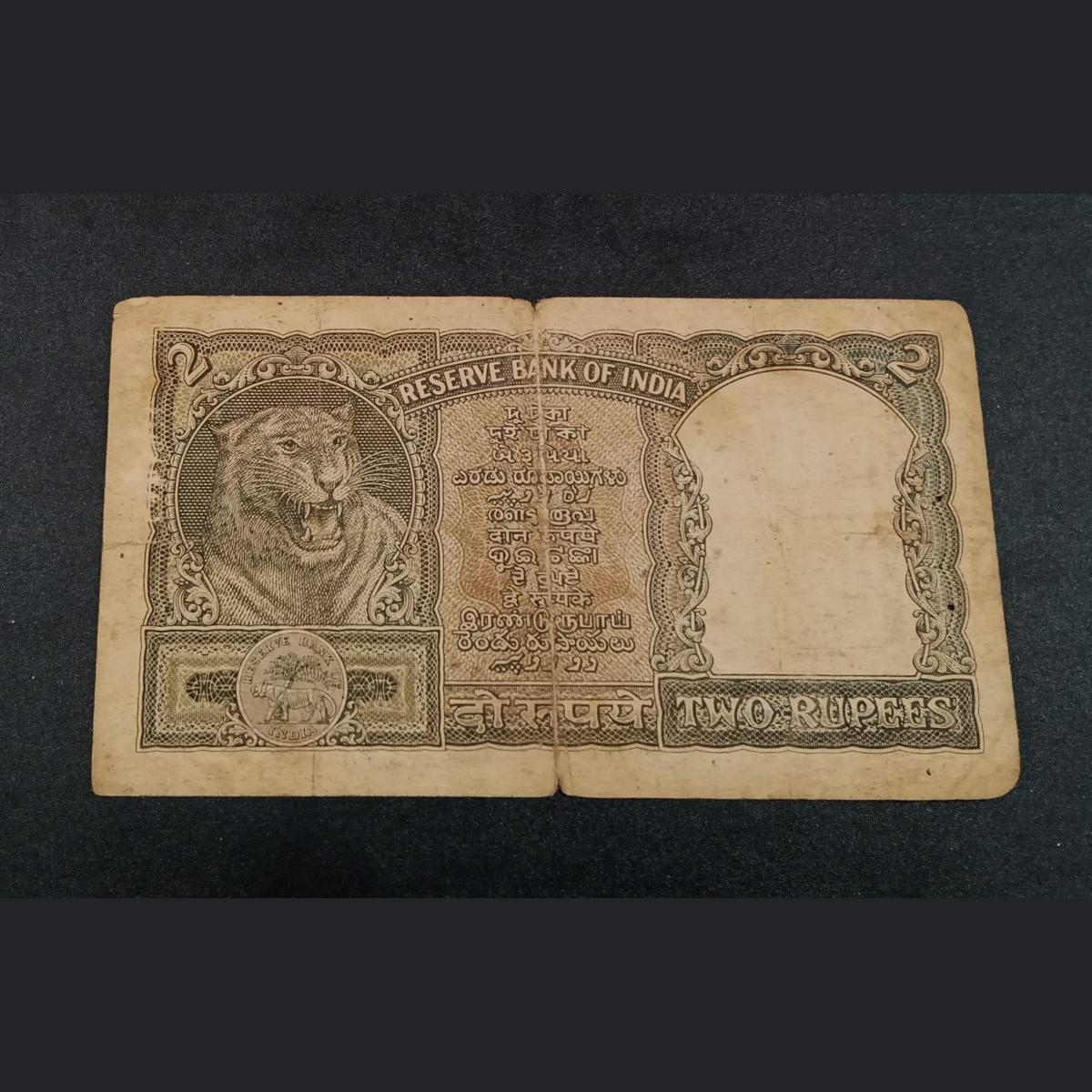 2 Rupees Old Big FAFRA Issue P.C BHATTACHARYA Half Tiger 🐯 OLIVE GREEN RARE Collectable Grade.