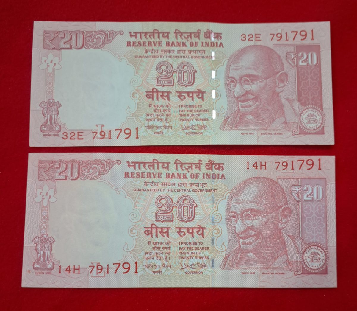 20 RUPEE TWO NOTE SET UNC CONDITIONSAME DOUBLIE NO. SAME SERIAL NO. 791791