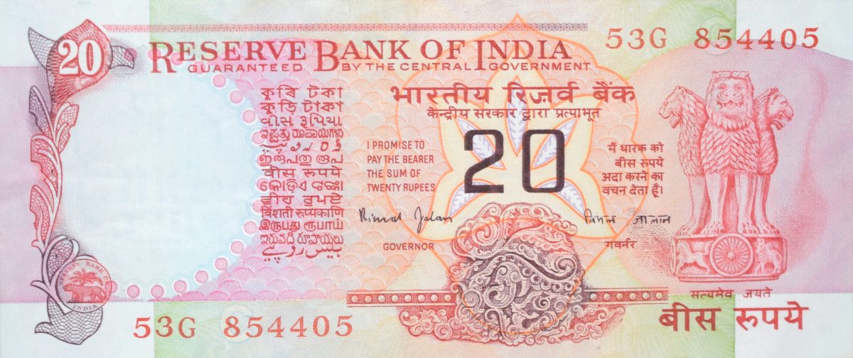 20 Rupees of Republic India (AD 1997) Bimal Jalan Konark Wheel Series