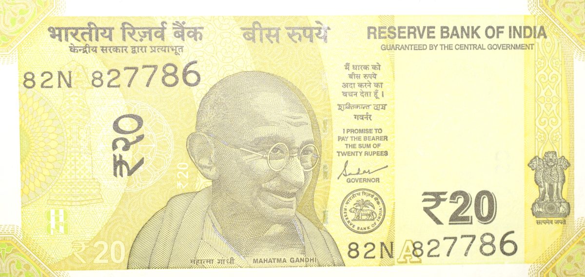 20 Rupees of Republic India (AD 2022) with A picture of the Ellora Caves Fancy No. ‘786’