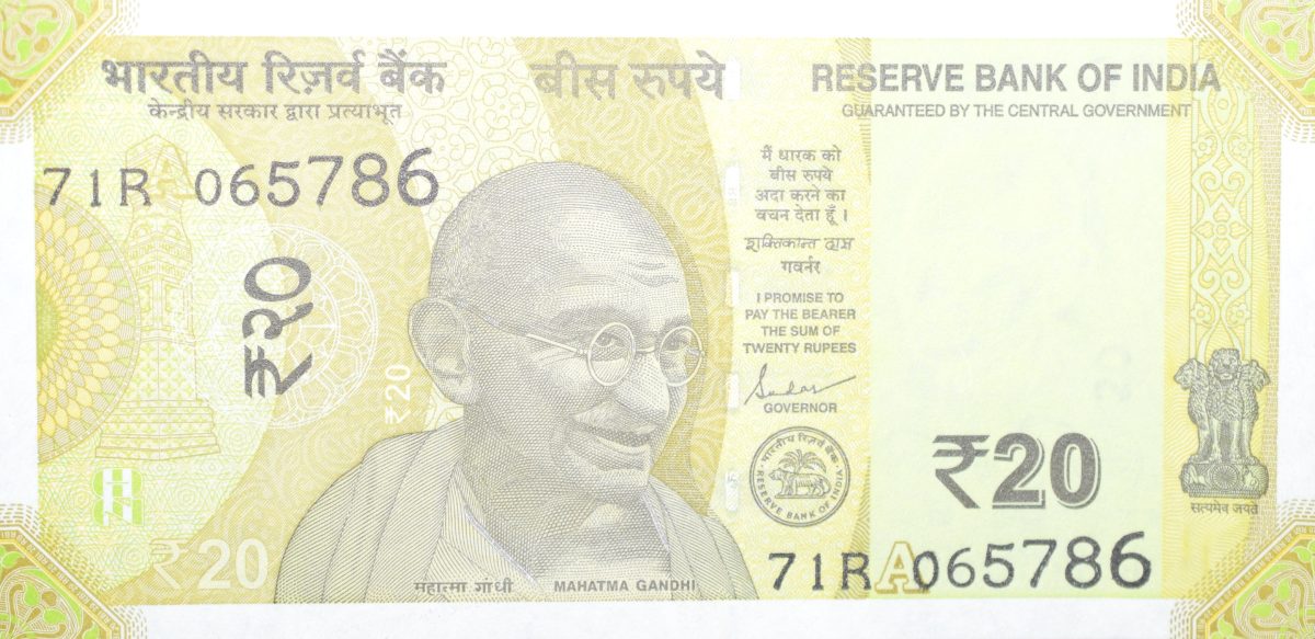 20 Rupees of Republic India (AD 2022) with A picture of the Ellora Caves Fancy No. ‘786’