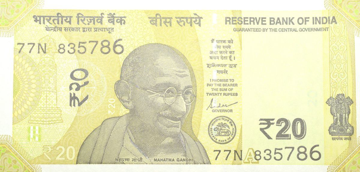20 Rupees of Republic India (AD 2022) with A picture of the Ellora Caves Fancy No. ‘786’