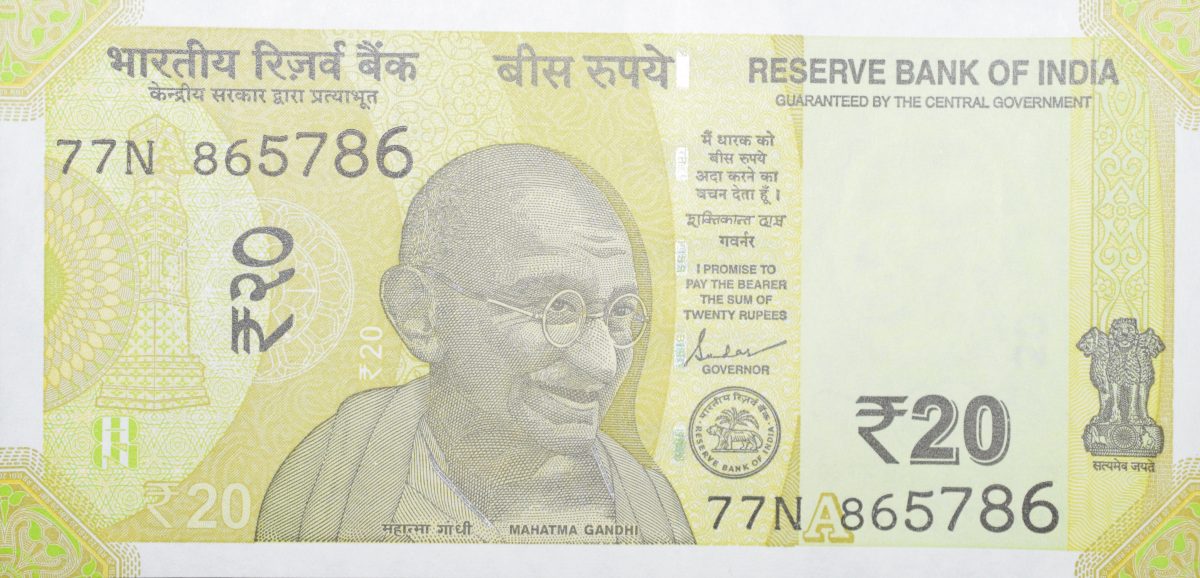 20 Rupees of Republic India (AD 2022) with A picture of the Ellora Caves Fancy No. ‘786’