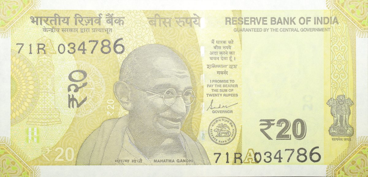 20 Rupees of Republic India (AD 2022) with A picture of the Ellora Caves Fancy No. ‘786’