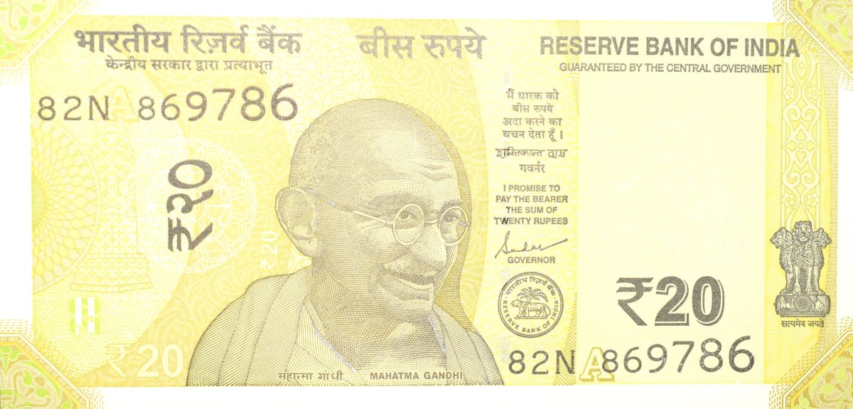 20 Rupees of Republic India (AD 2022) with A picture of the Ellora Caves Fancy No. ‘786’