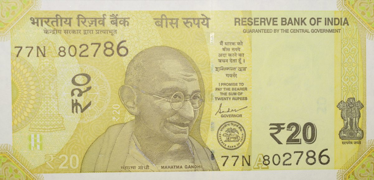 20 Rupees of Republic India (AD 2022) with A picture of the Ellora Caves Fancy No. ‘786’