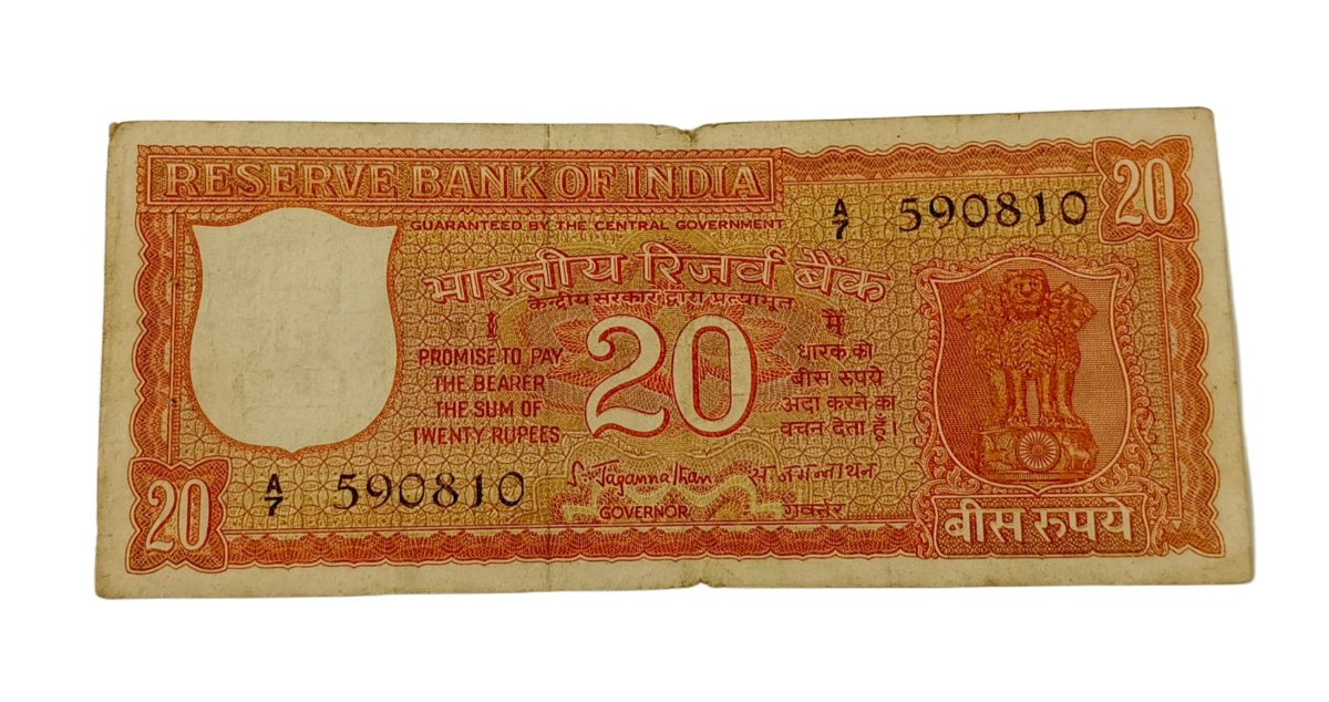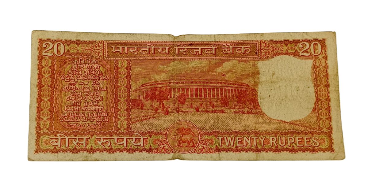 20 Rupees Old PARLIAMENT Issue S.JAGANNATHAN “Closed Lotus” FIRST ISSUE Catalog Number E-1 **RARE** Collectable Grade.