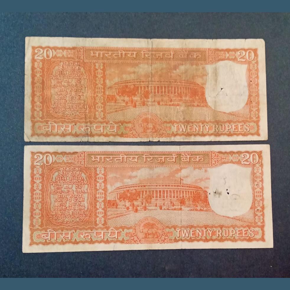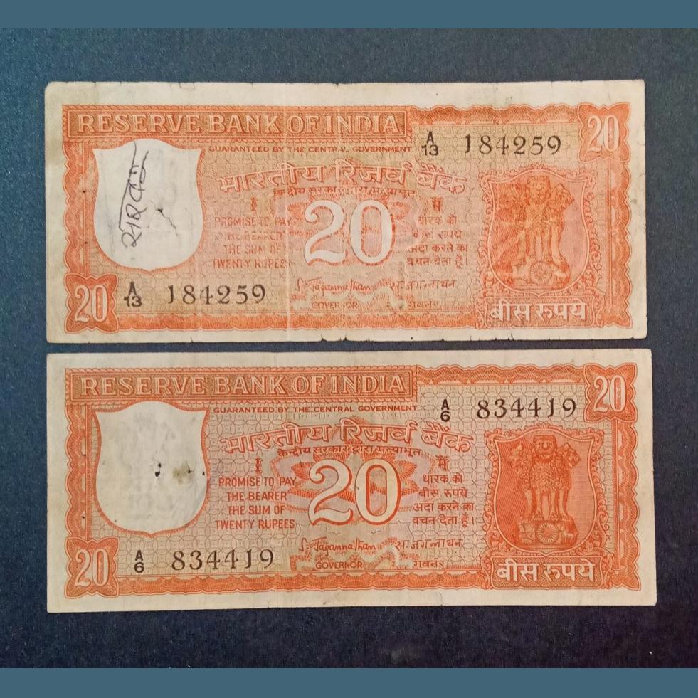 20 Rupees Old PARLIAMENT Issue Signature S.JAGANNATHAN with “CLOSED LOTUS” FIRST ISSUE Catalog Number E-1 SET of 2 Notes **RARE** Collectable Grades.
