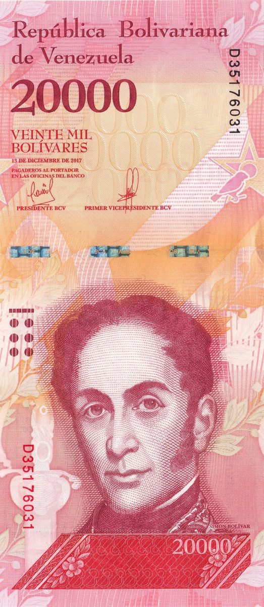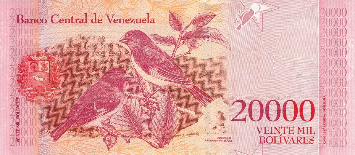 20000 Bolivares of Venezuela Country (AD 2016-2017) with Red siskin Birds & Mountains