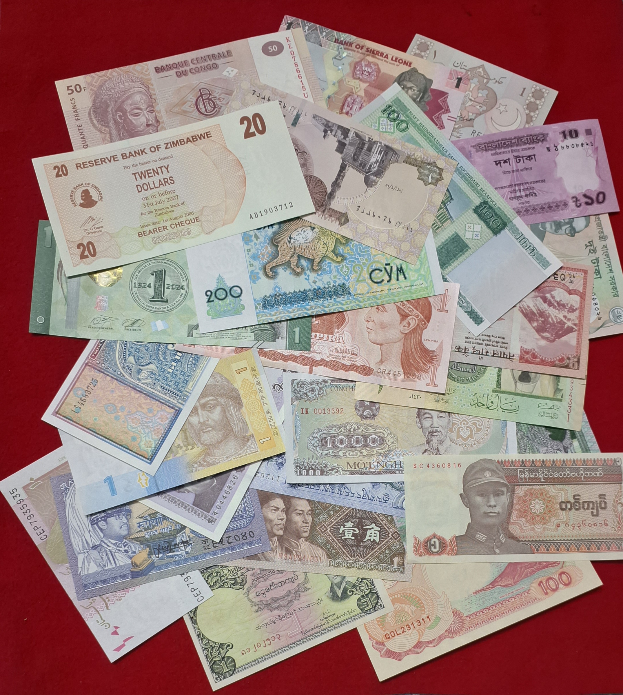 25 DIFFERENT COUNTRY NOTES UNC CONDITION NOTES