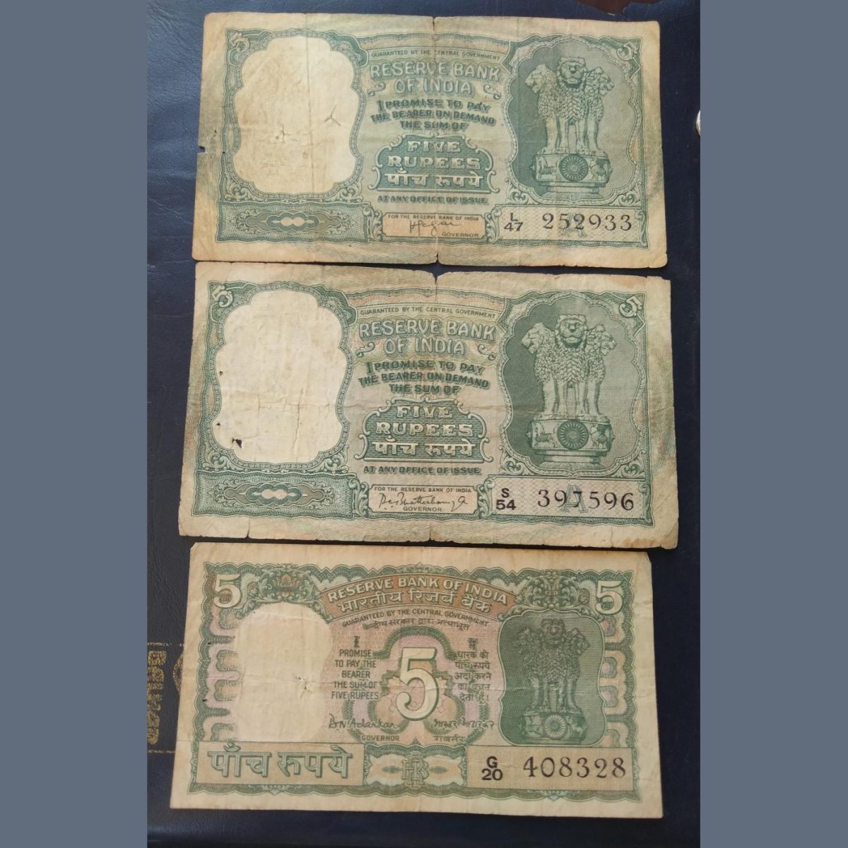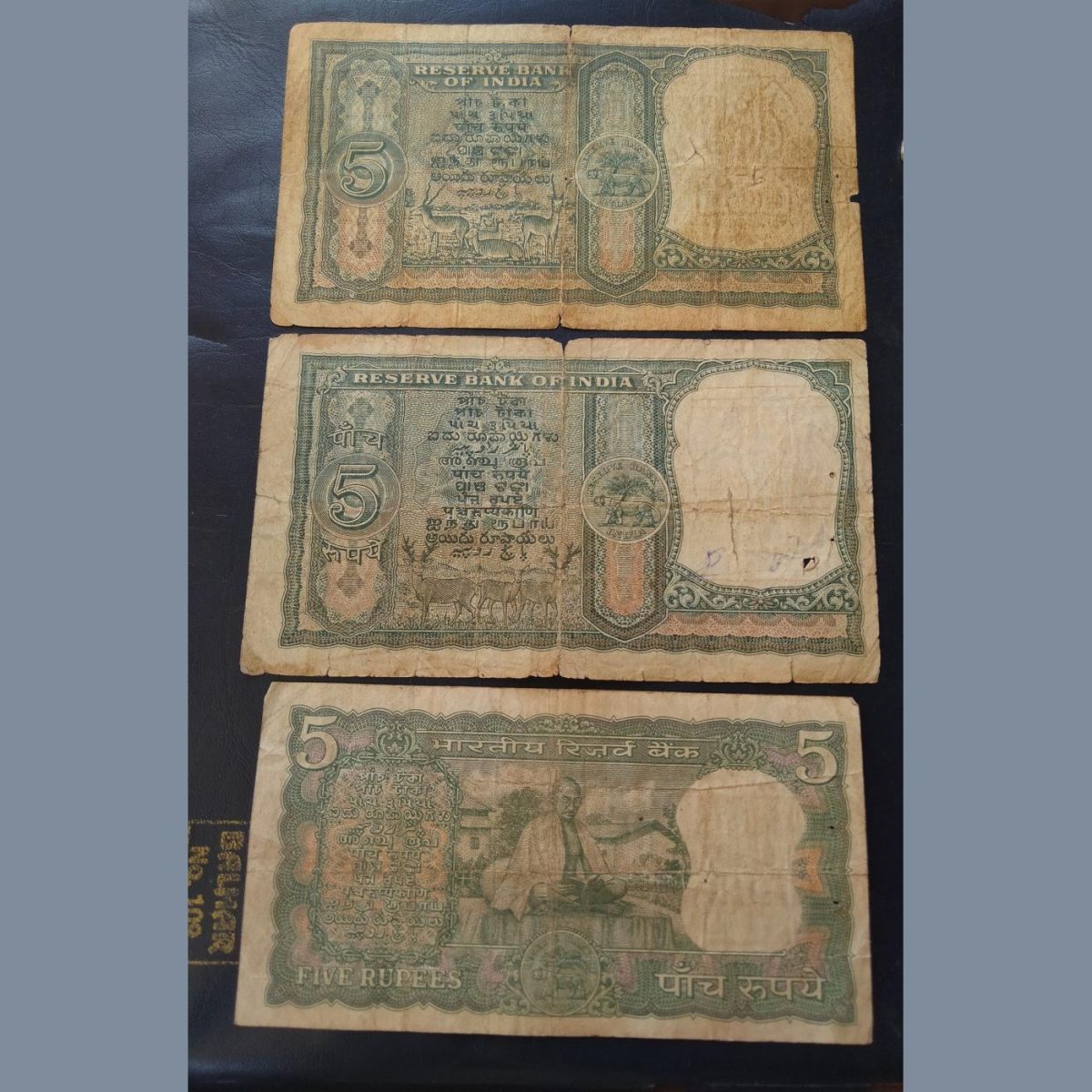 5₹ NOTES 3 different signature. 1 H. V. R. LENGER. 6 DEER 🦌 2 P. C.BHATTACHARYA. 3 dee