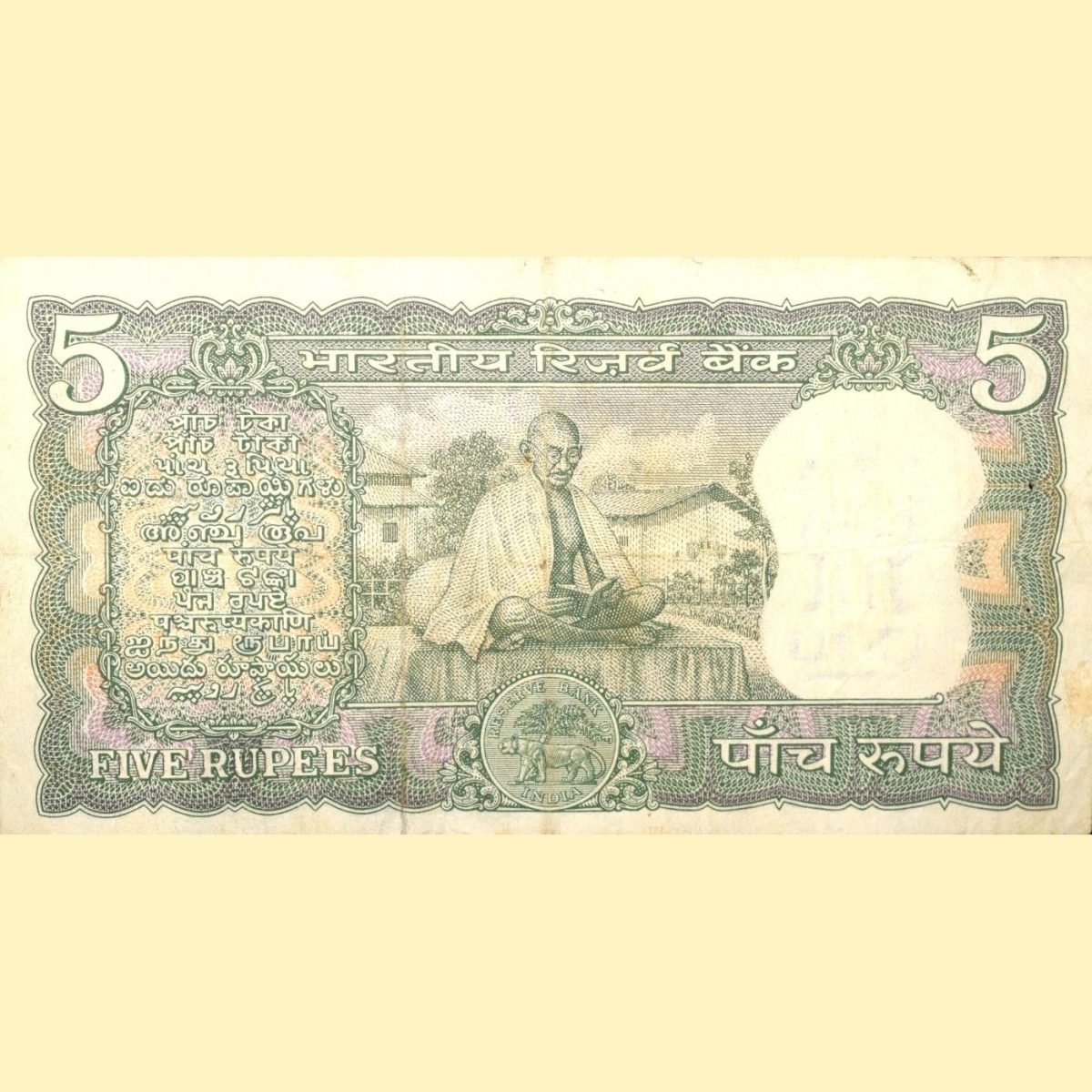 5 Rupees of Republic India (AD 1969-1970) 100th birth anniversary of Mohandas Karamchand Gandhi – L.