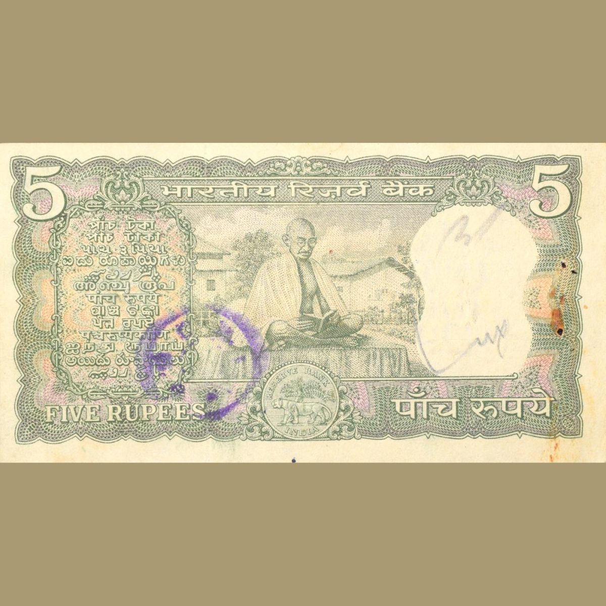 5 Rupees of Republic India (AD 1969-1970) 100th birth anniversary of Mohandas Karamchand Gandhi – L.
