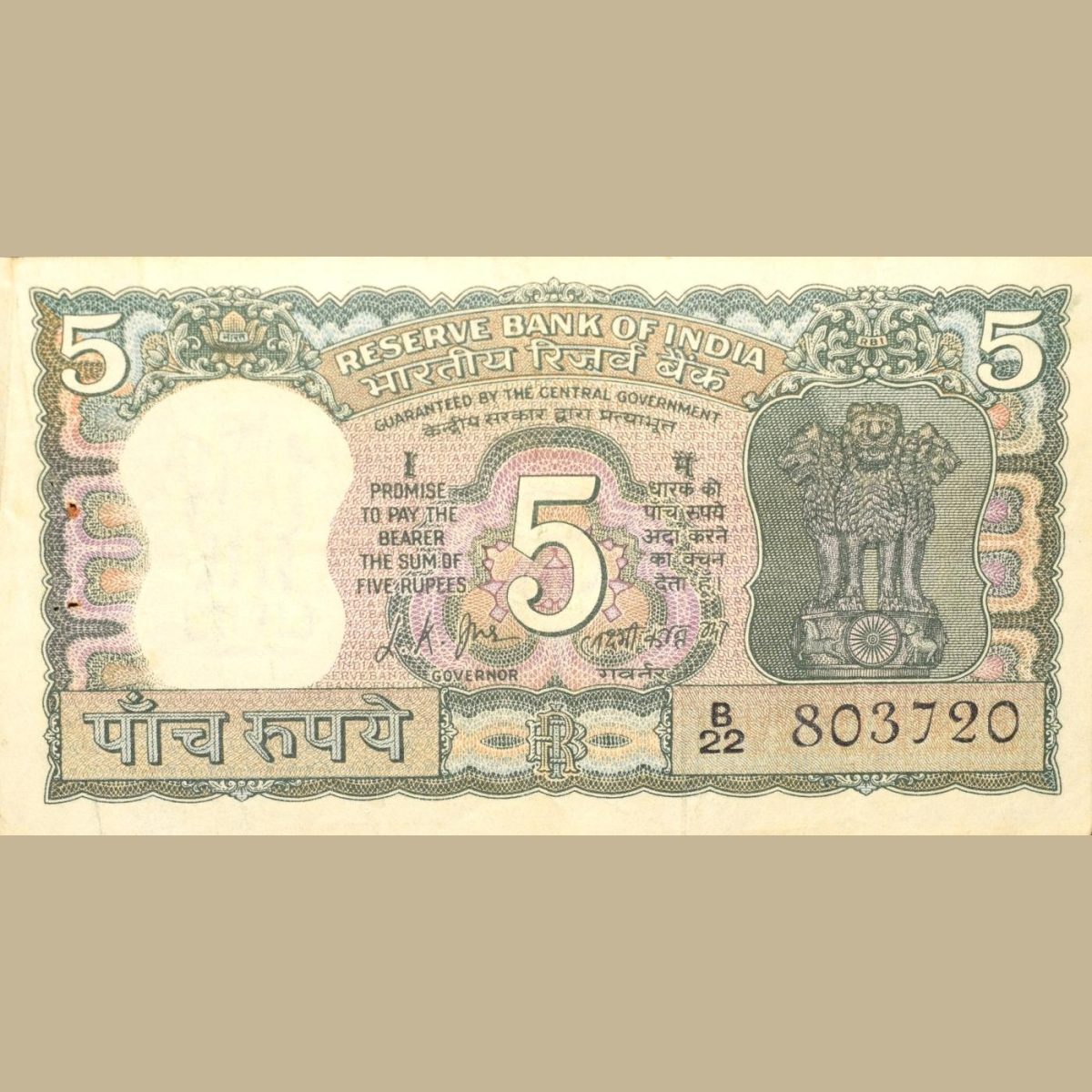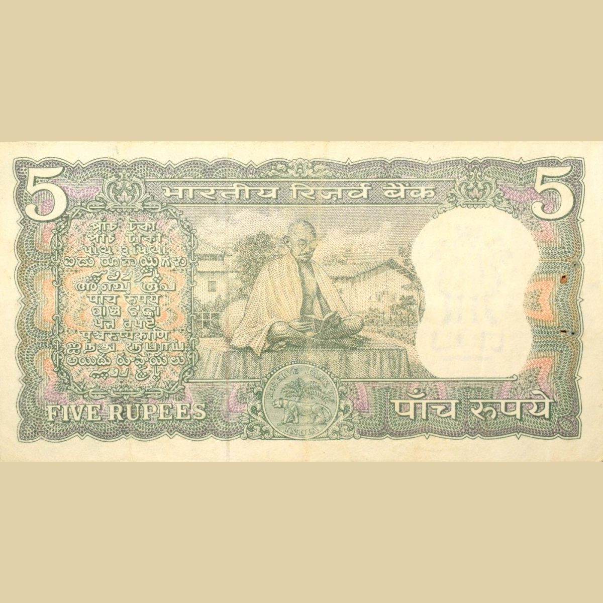 5 Rupees of Republic India (AD 1969-1970) 100th birth anniversary of Mohandas Karamchand Gandhi – L.