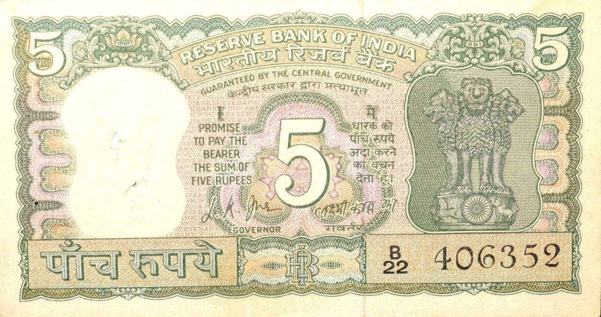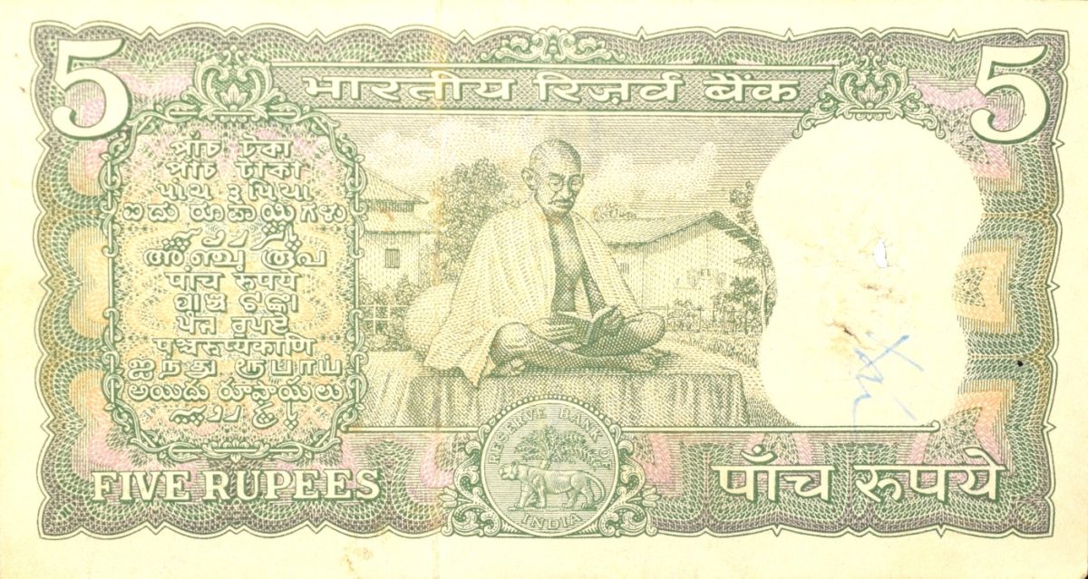 5 Rupees of Republic India (AD 1969-1970) 100th birth anniversary of Mohandas Karamchand Gandhi – L.