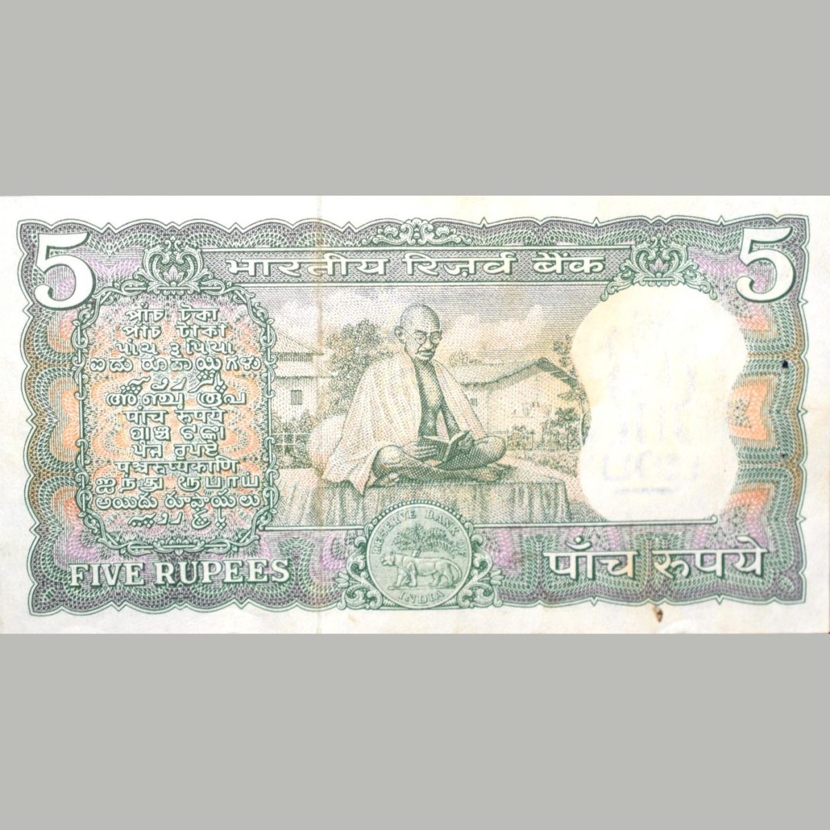5 Rupees of Republic India (AD 1969-1970) 100th birth anniversary of Mohandas Karamchand Gandhi – L.