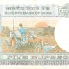 5 Rupees of Republic India (AD 1985-1990) with Farmer ploughing with a tractor while sun is rising – R.N. Malhotra Signature
