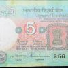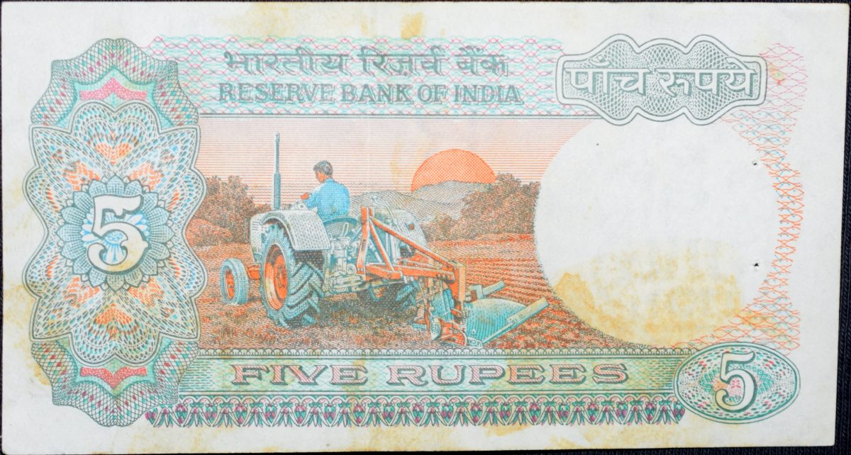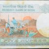 5 Rupees of Republic India (AD 1988) with Farmer ploughing with a tractor while sun is rising – S. Venkatiramanan Signature