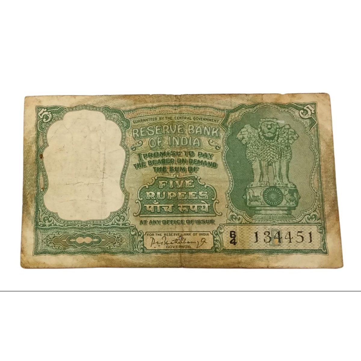 5 Rupees Old Big FAFRA Issue P.C BHATTACHARYA in Used Condition.