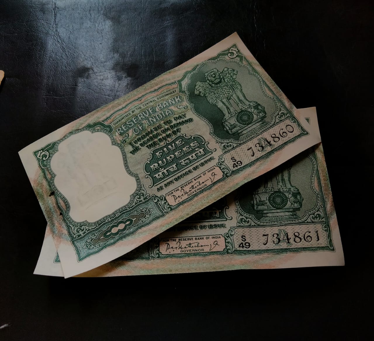 5 Ruppes Big Size Fafda Note Singnature P C bhattacharya condition gem UNC one piece given