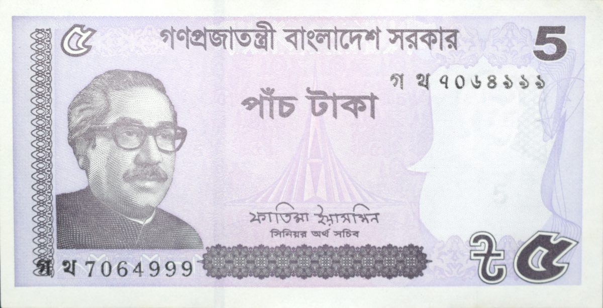 5 Taka of Bangladesh (AD 2022) with Kusumba Mosque is a mosque in Manda Upazila