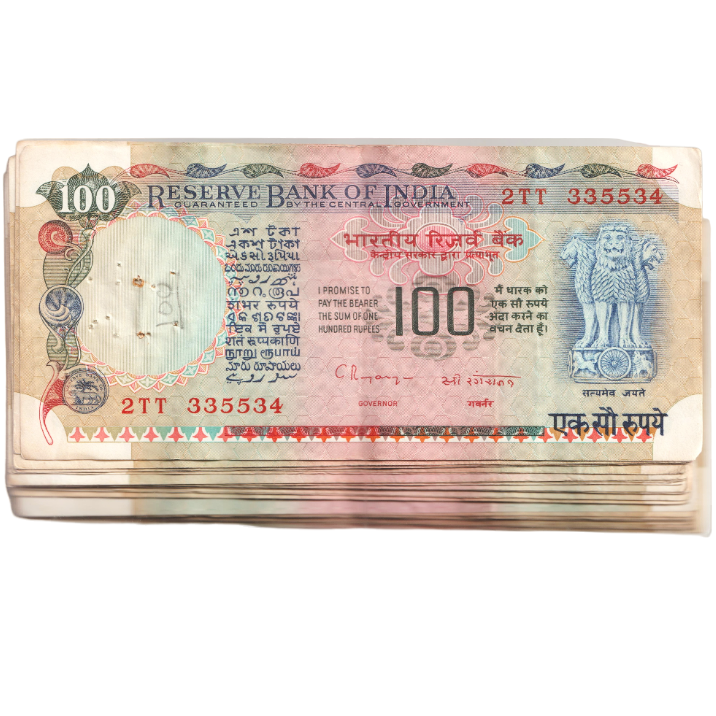 50 Notes Set of Old 100 Rupee Unserialed Used Bank Notes Bundle Signed By Governor C Rangarajan