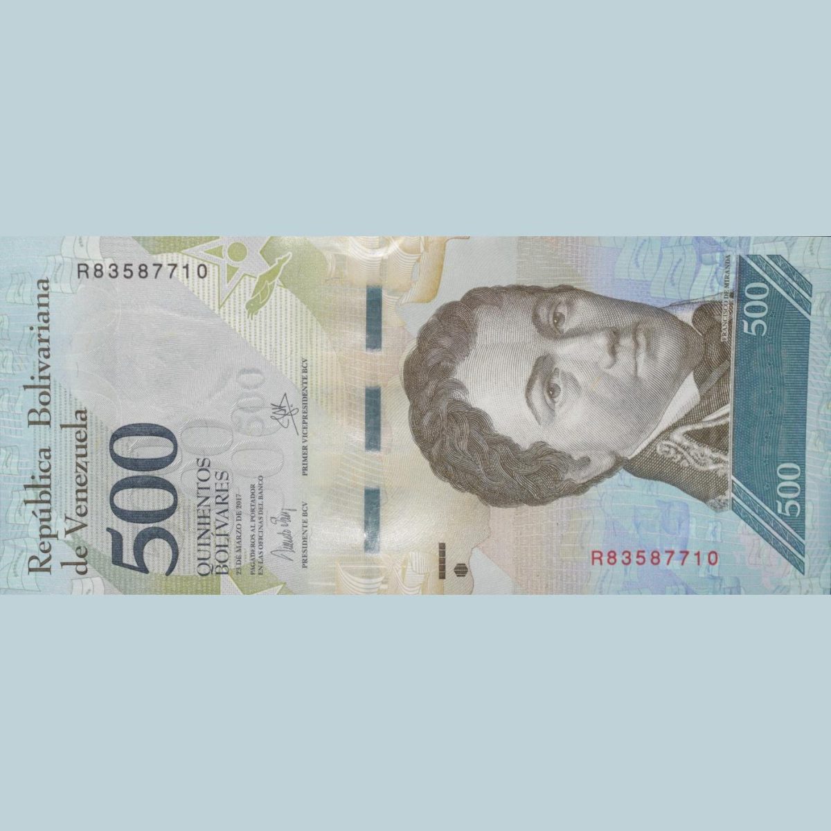 500 Bolivares of Venezuela Country (AD 2015-2017) with Amazon River Dolphins