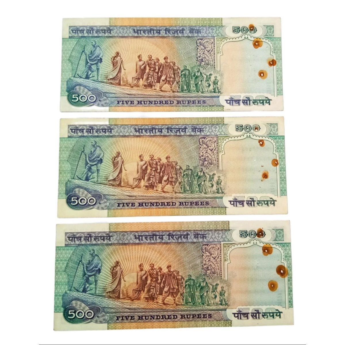 500 Rs DANDI MARCH Issue R.N MALHOTRA, S.VENKATRAMAN, C.RANGARAJAN 3 Different **V. RARE** AUNC Grades Pin Holes.