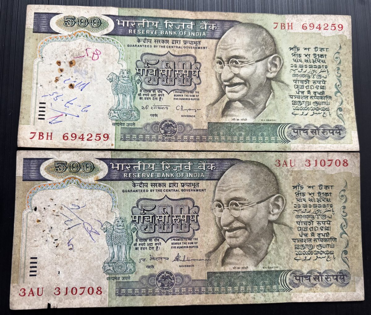 500 Rupees C Rangarajan & Venkatraman Sign Two Notes Set #1