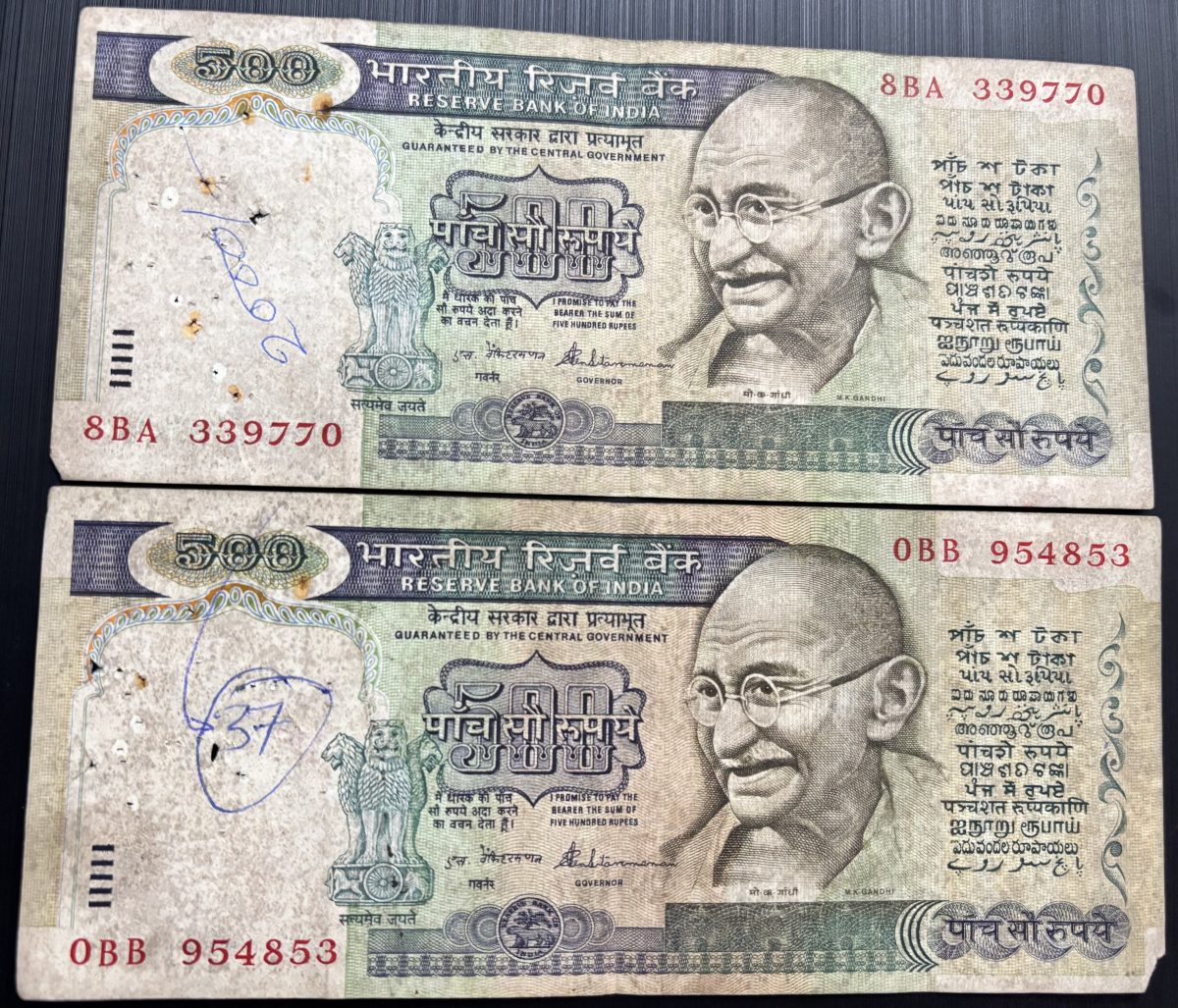 500 Rupees C Rangarajan & Venkatraman Sign Two Notes Set #5