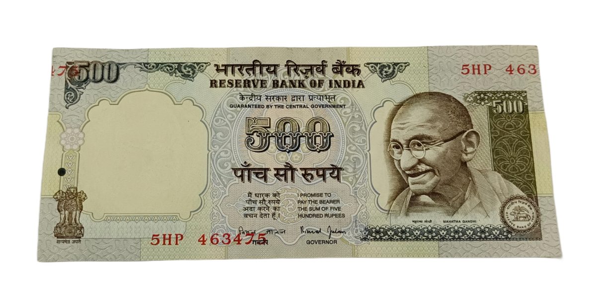 500 Rupees Old OLIVE GREEN Issue BIMAL JALAN with SERIAL NUMBER SHIFTED Error **V. SCARE** High AUNC Grade.
