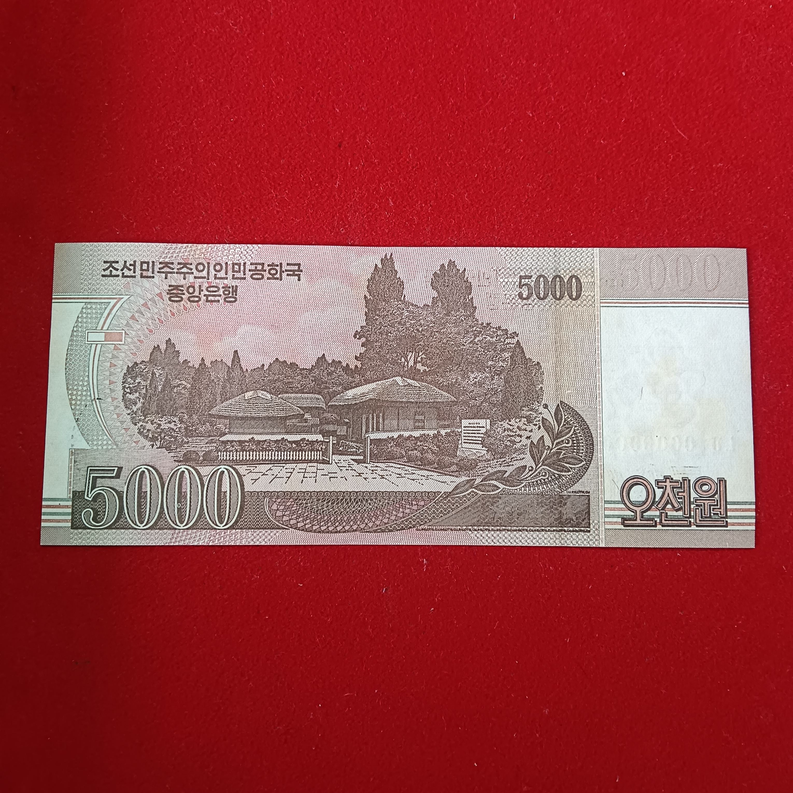 This is a North Korean 5,000 won banknote from 2008.