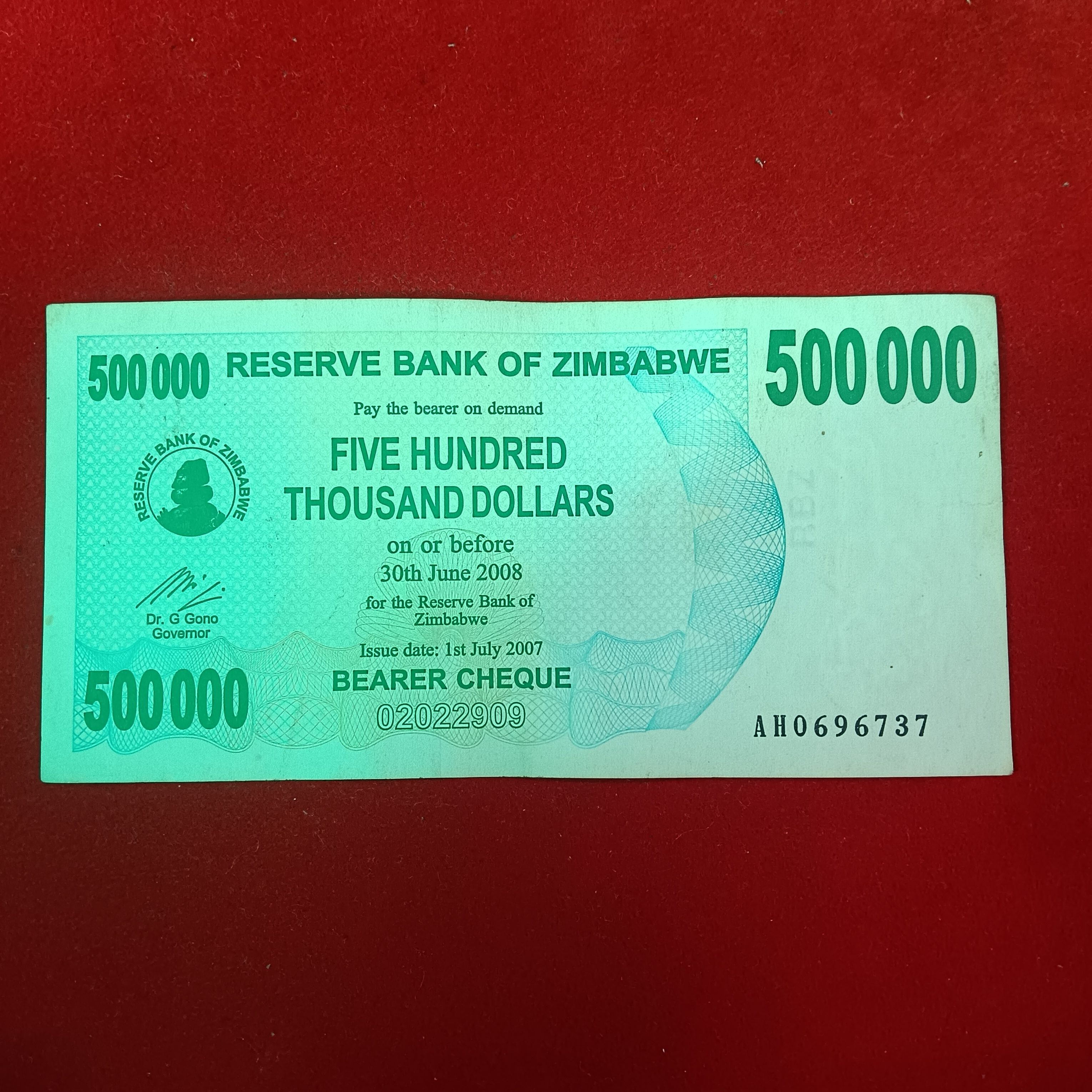 - 500000 Five Hundred Thousand Dollars Issue Date 1 July 2007 Year Good Condition Note Reserve Bank of Zimbabwe