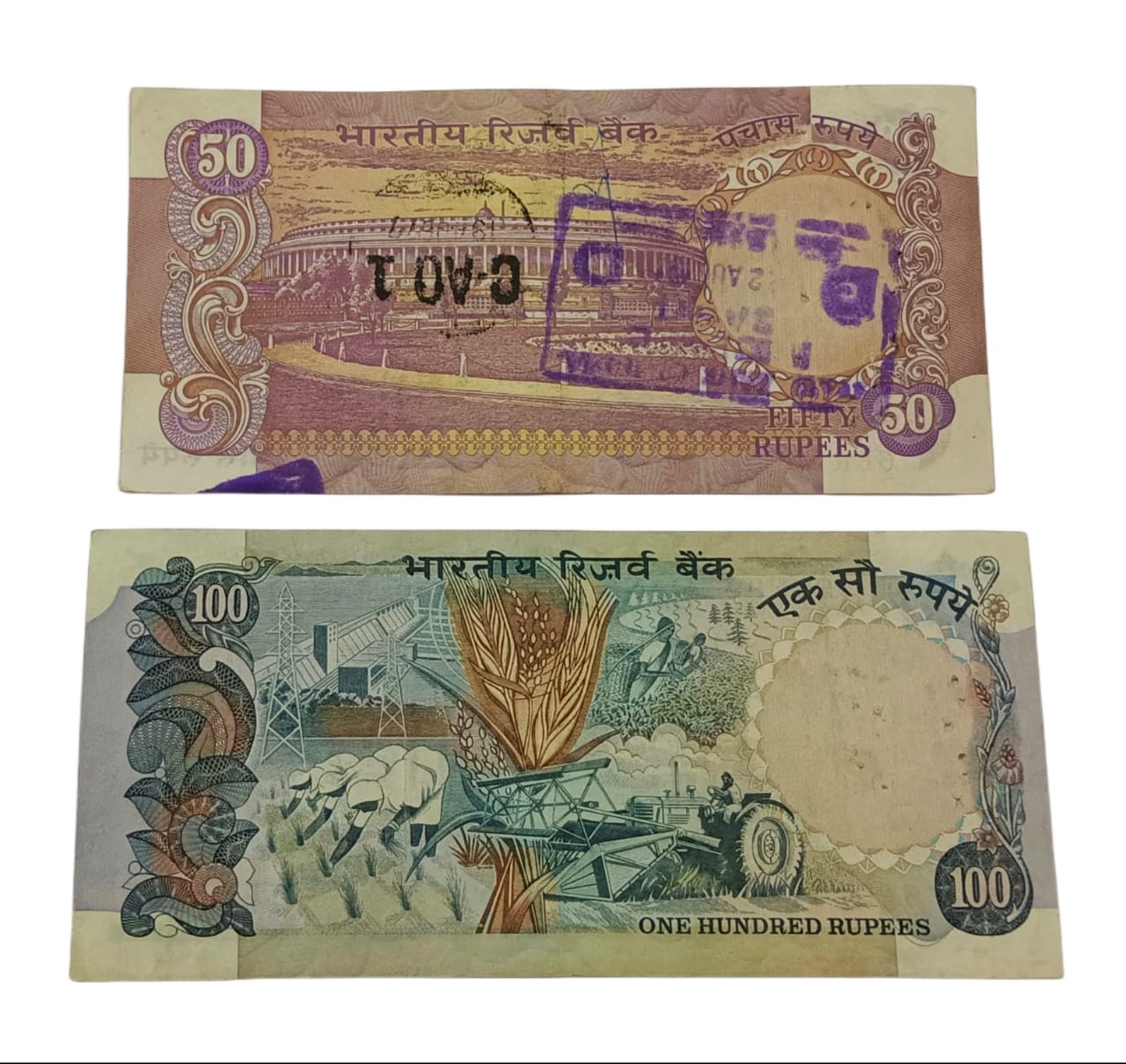 50Rs PARLIAMENT & 100Rs AGRICULTURE Same Signs K.R PURI Set 2 Notes **RARE** Collectable Grades.