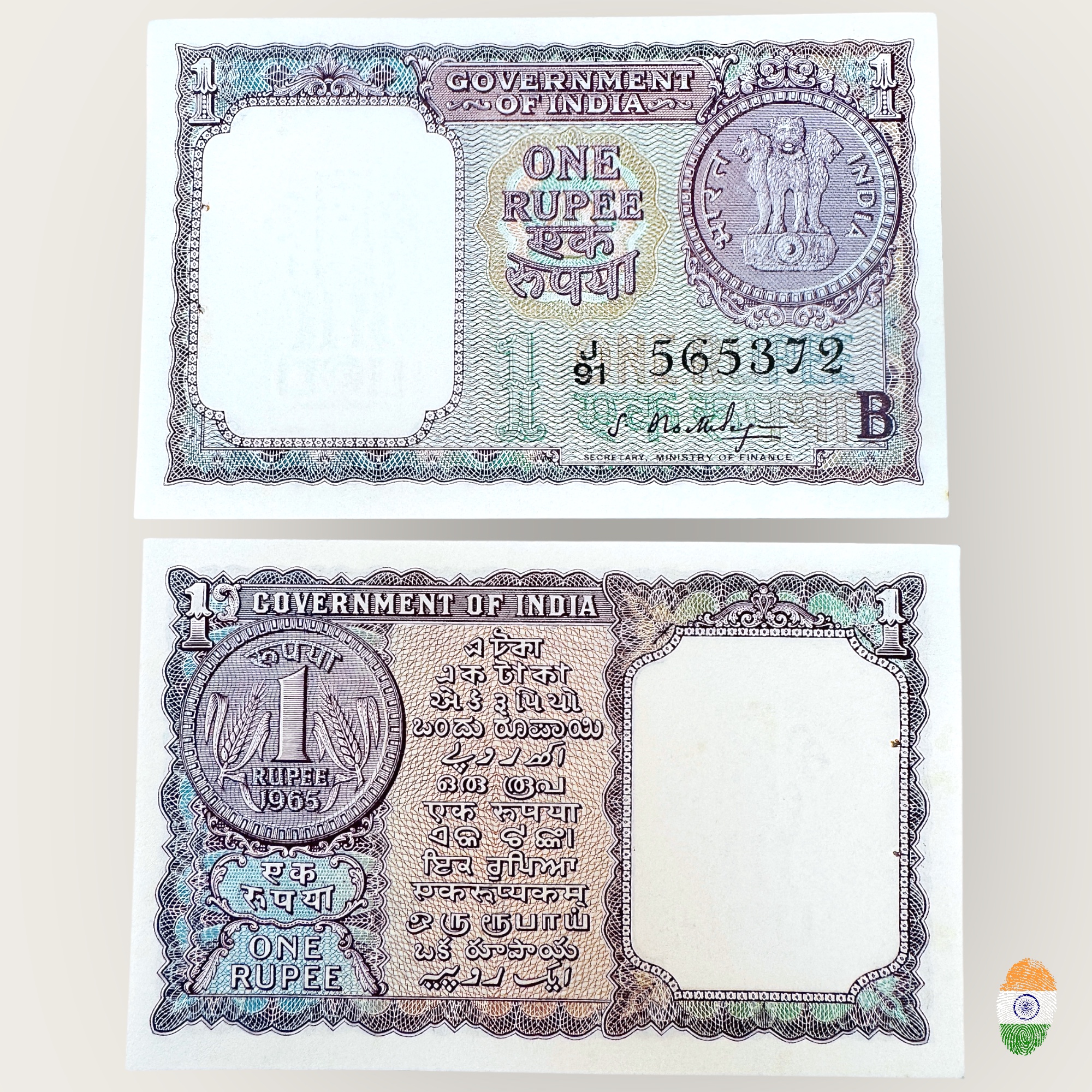 A – 16 Re 1 India Banknote Signature series Signed by S.BHOOTHAILINGAM INSET PLAIN 1966 Issue