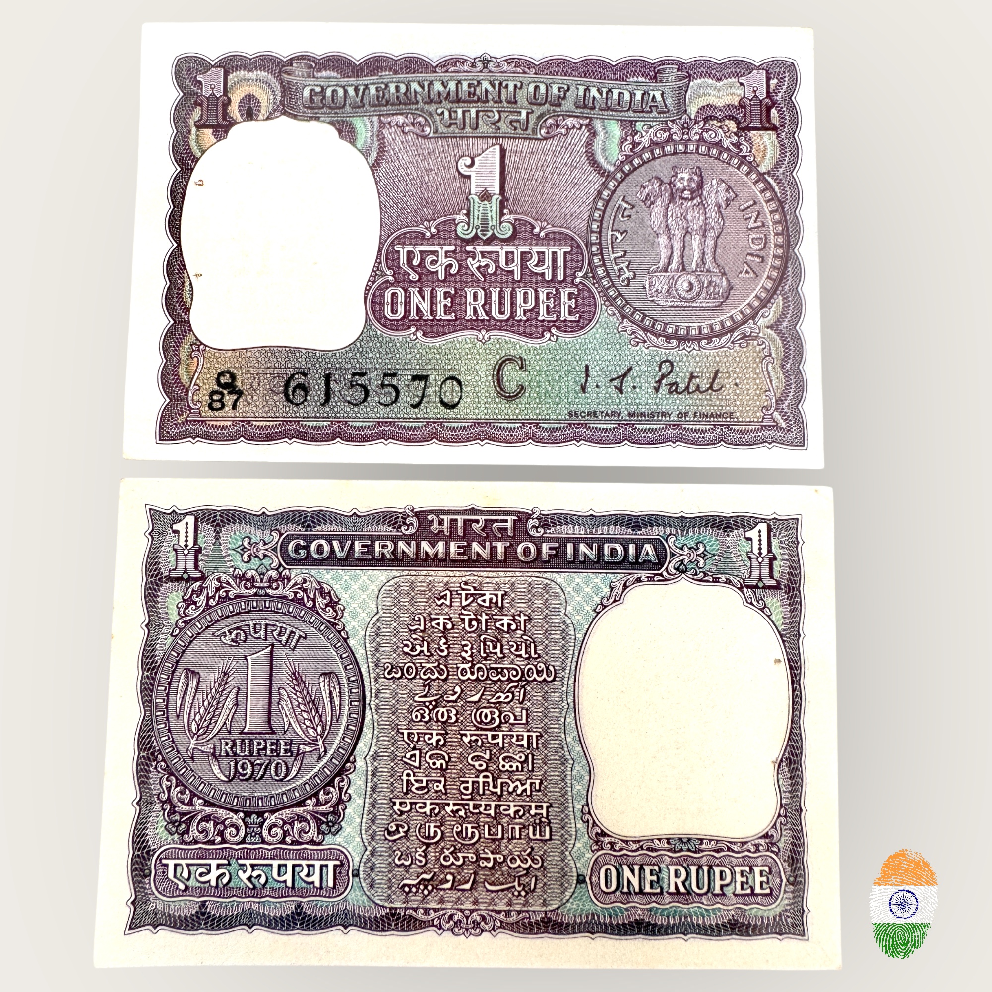 A – 23 Re 1 India Banknote Signature series Signed by I.G.PATEL INSET C 1970 Issue