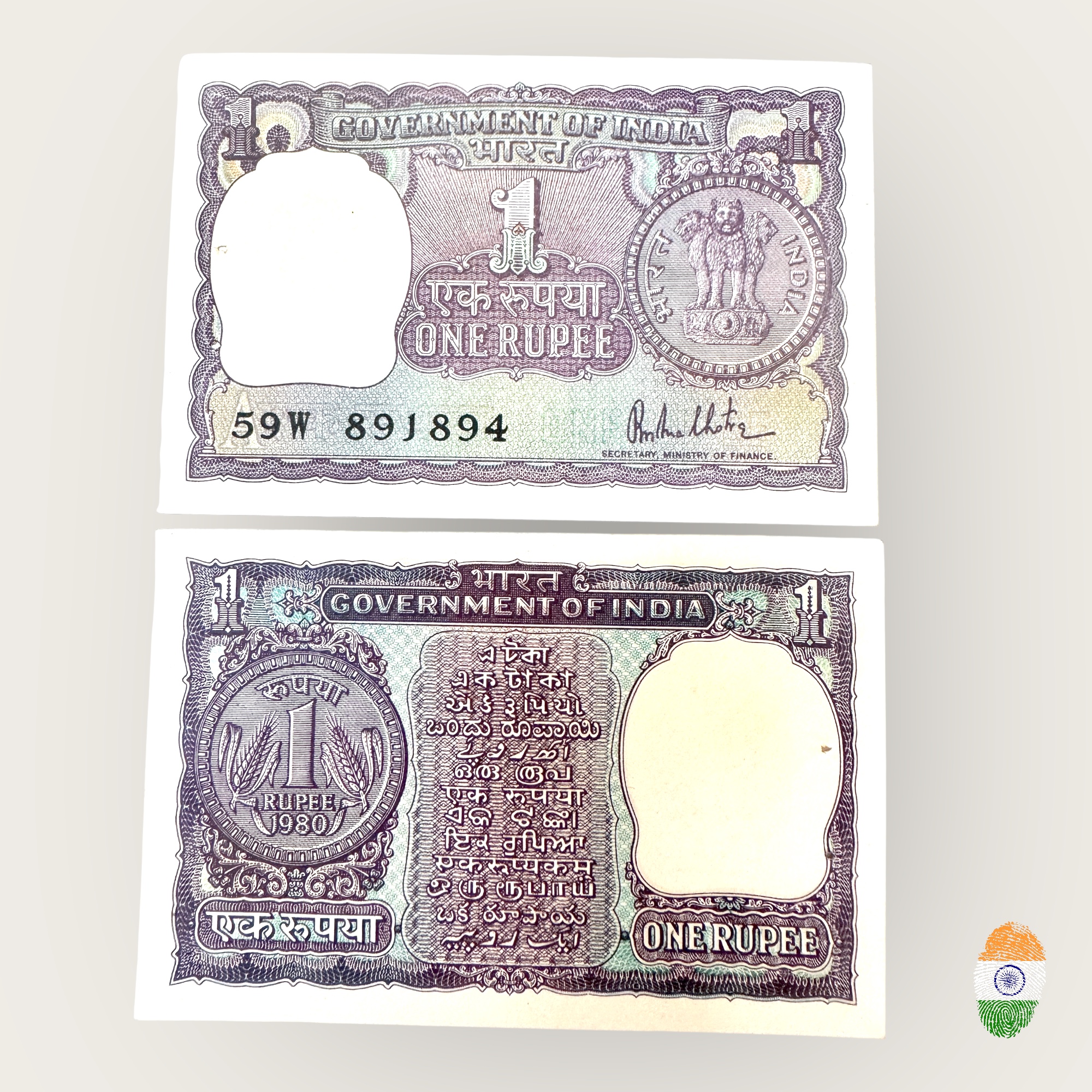 A – 41 Re 1 India Banknote Signature series Signed bY R.N.MALHOTRA INSET A 1980 Issue
