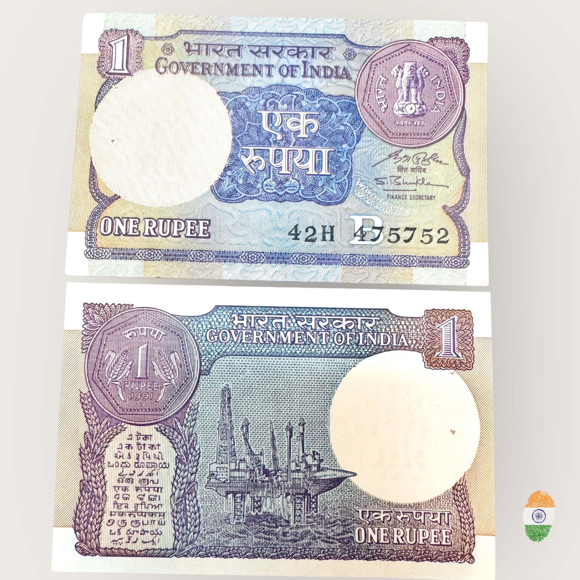 A – 55 Re 1 India Banknote Signature series Signed bY S.P.SHUKLA INSET B 1991 Issue