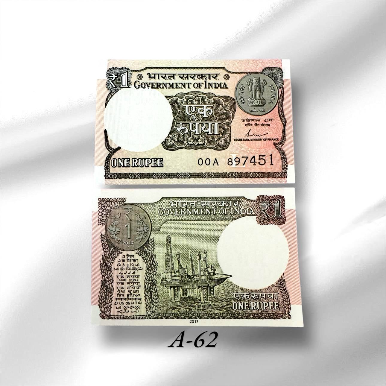 A 62 Re 1 India Banknote Signature series Signed By Shaktikant Das INSET L 2017 Issue