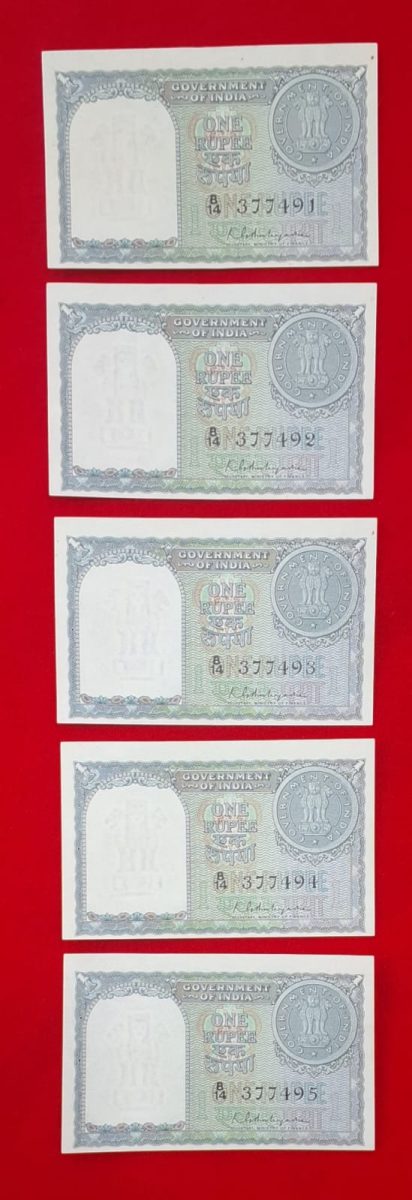 A3 K.G. Ambegaonkar 5 notes UNC condition cutting error buyer get only one note each note price 3150 prefix B 14 ( 214 SHRI RAM JI NUMBER)