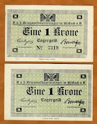 POW Camp during the Great War EINE KRONE & ZWEI KRONEN, 1916-18. The notes are identified C# 1316.