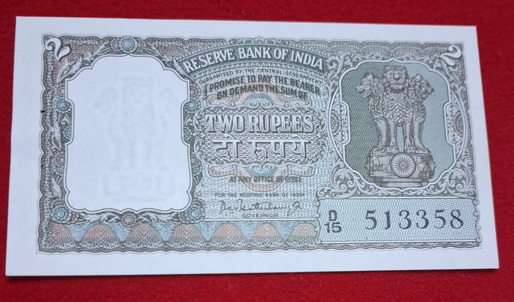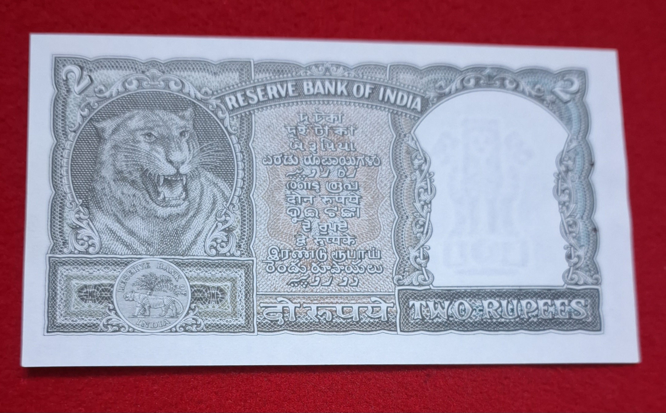 B-6 2 RUPEE NOTE GEM UNC CONDITION NOTE GREEN TIGER SERIAL NO. 513358