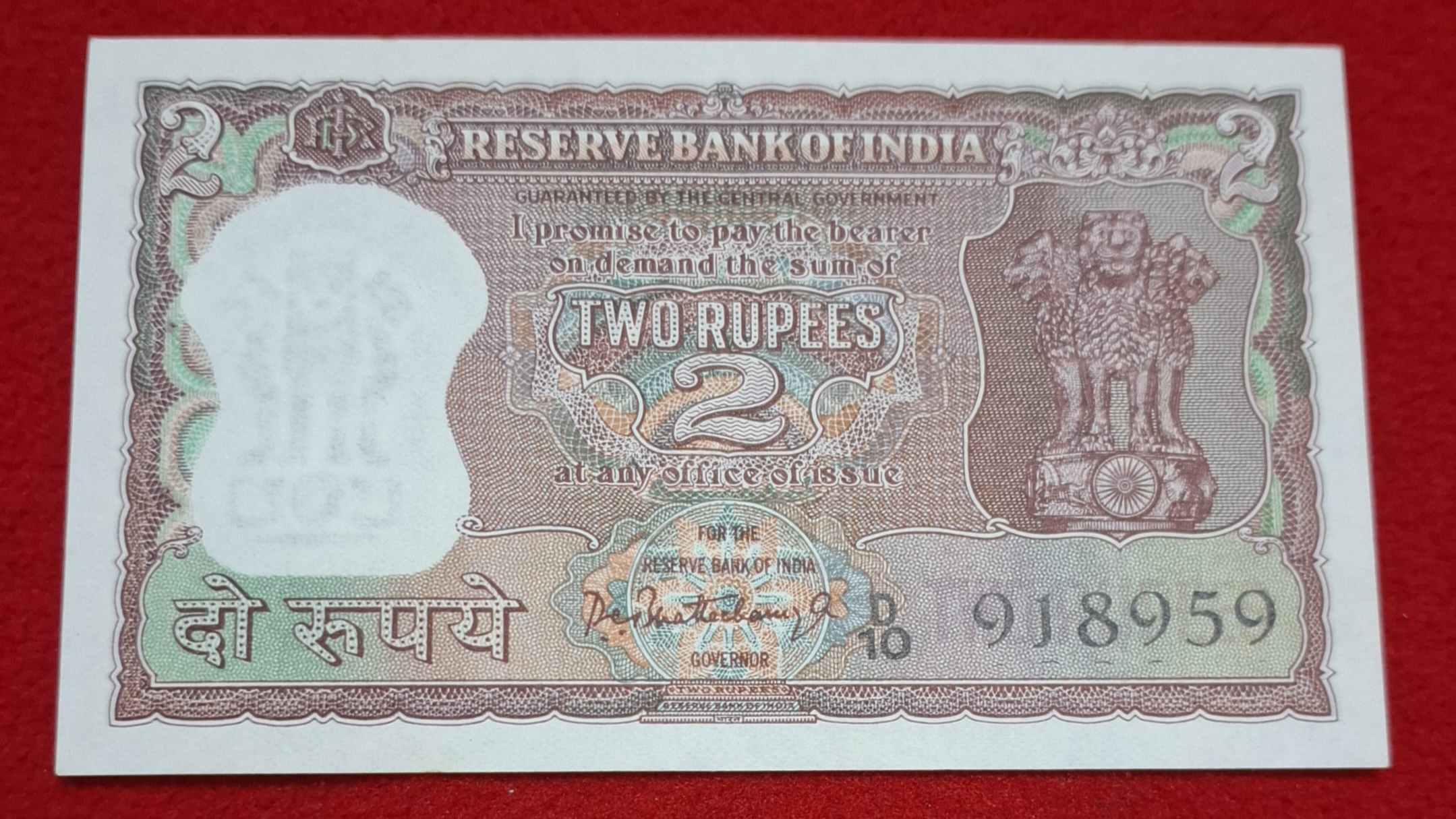 B-7 2 RUPEE NOTE GEM UNC CONDITION NOTE SERIAL NO. 918959