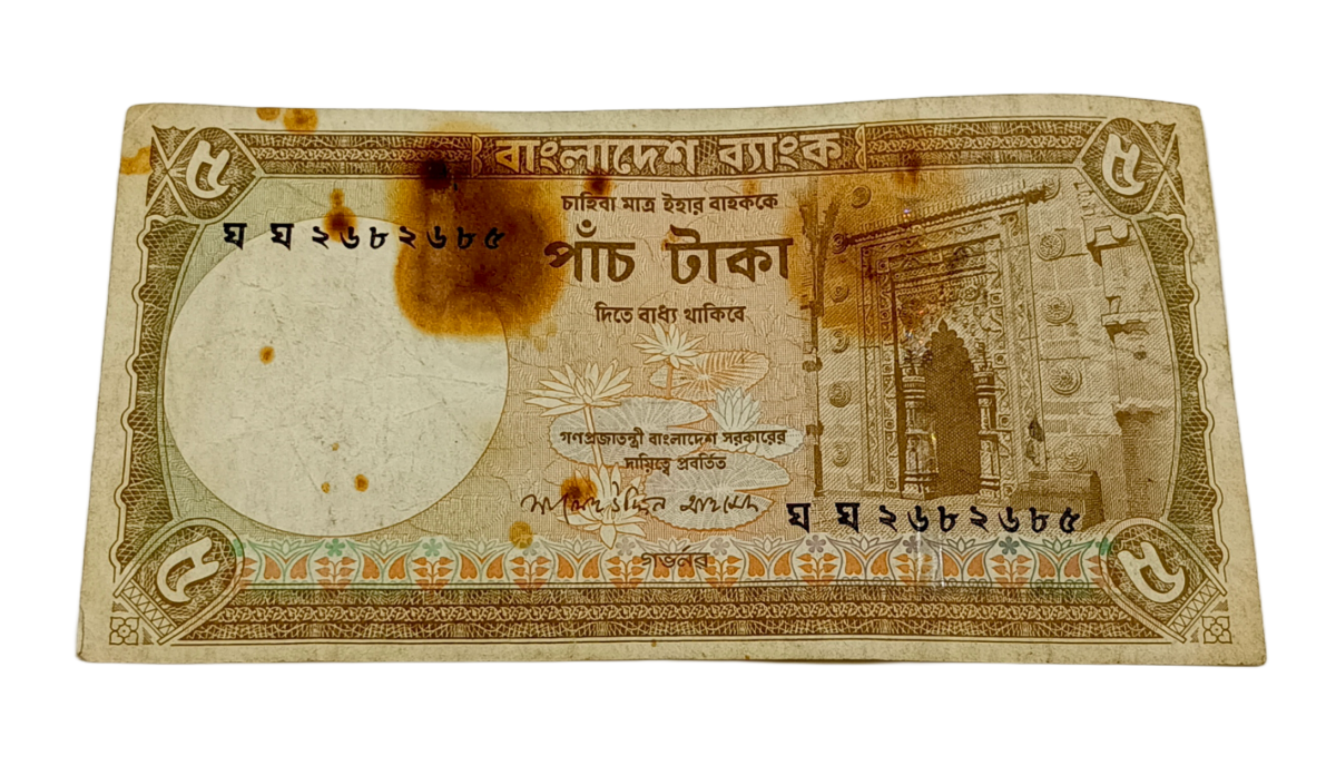The BANGLADESHI Old Series 5 TAKA banknote offers a glimpse into Bangladesh’s past, serving as a tangible link to bygone eras and historical events. Whether you’re a seasoned collector or a newcomer to the world of banknote collecting, this piece promises to elevate your collection with its historical significance and aesthetic charm.